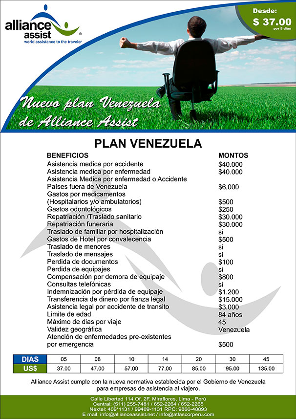 23 Abr 2014 Plan Venezuela Alliance Assist cumple con la nueva normativa establecida por el gobierno de Venezuela....